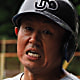 前田康秀 flies out to catcher. Putout by catcher 選手E.